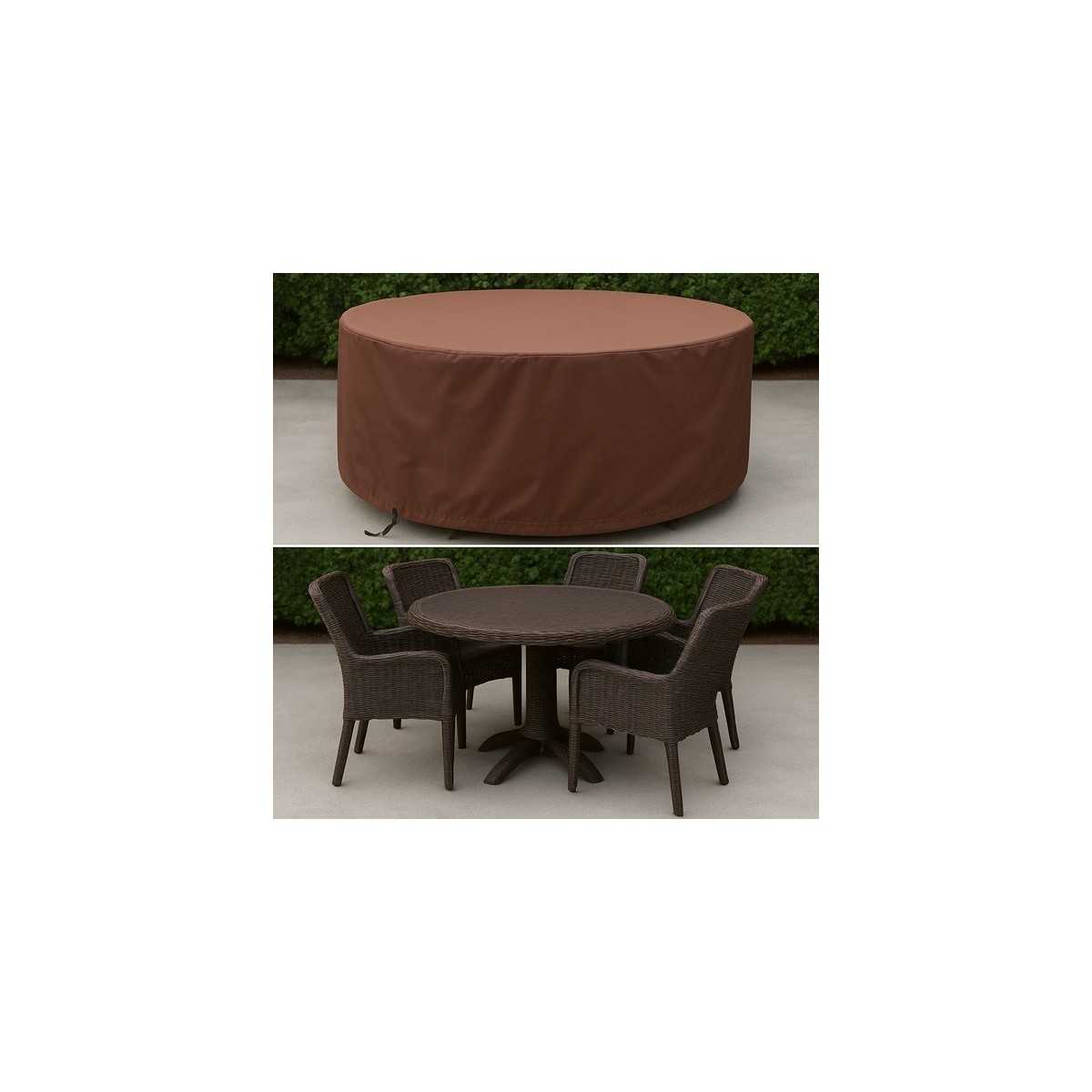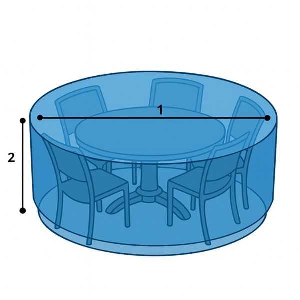 Mesurez le diamètre total (table + chaises poussées sous la table) ainsi que la hauteur du dossier le plus haut. Ce sont ces deux valeurs qui garantissent un ajustement parfait.