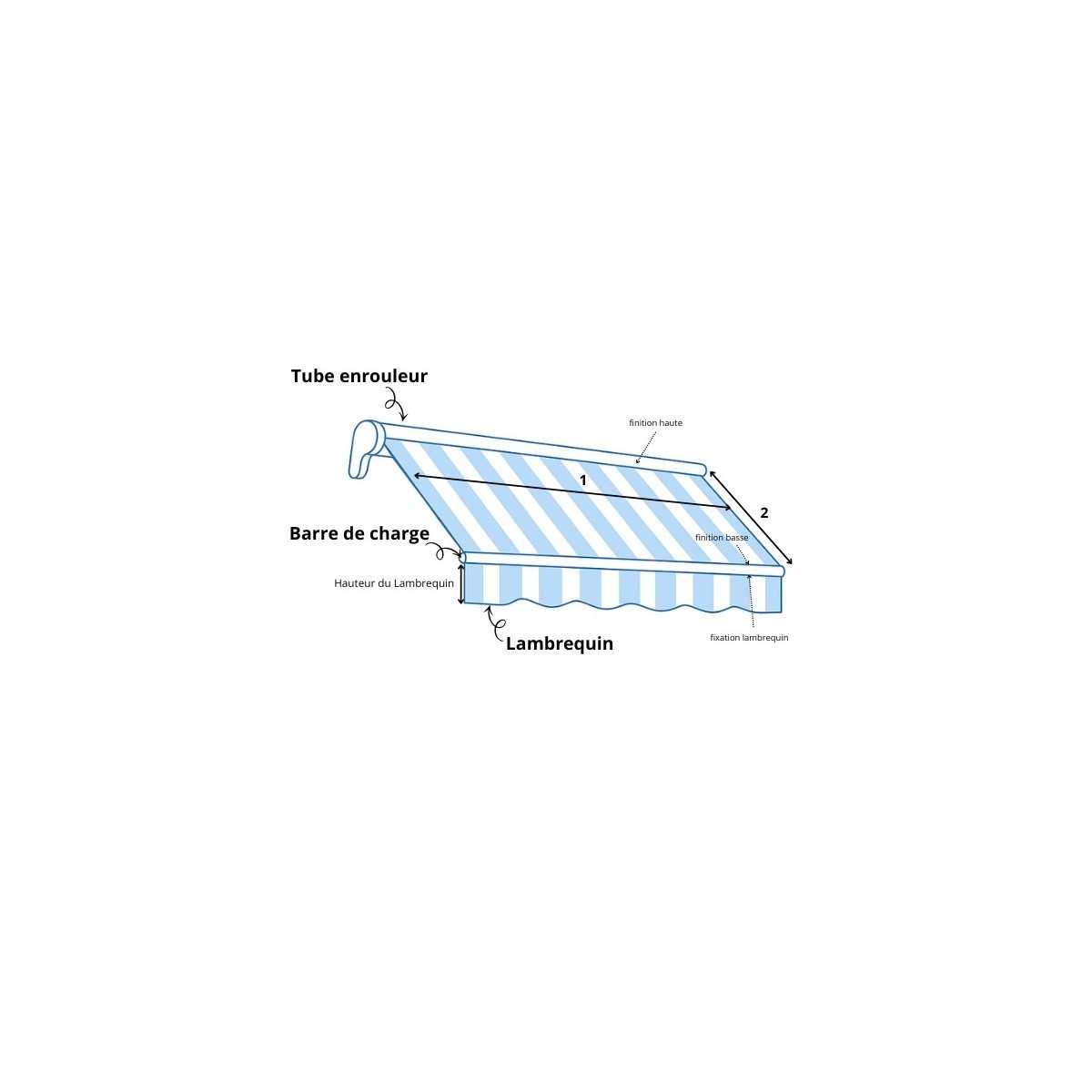 Mesurez la largeur totale du store (bras compris) ainsi que l’avancée lorsque le store est entièrement déployé. N'oubliez pas de mesurer la hauteur du lambrequin si vous souhaitez le remplacer.
