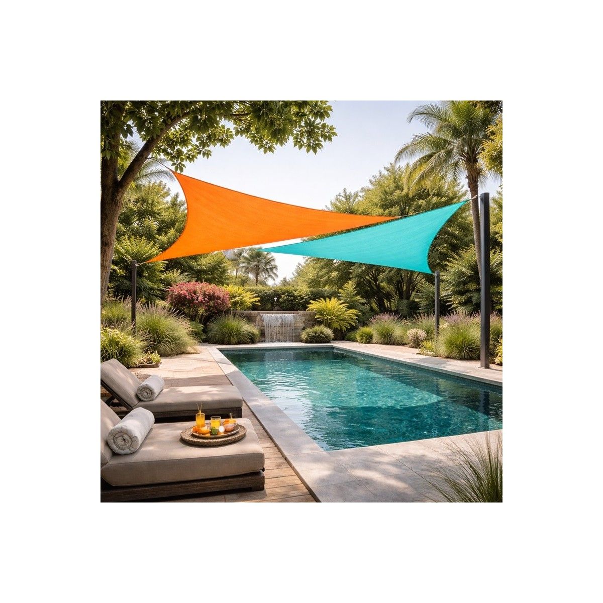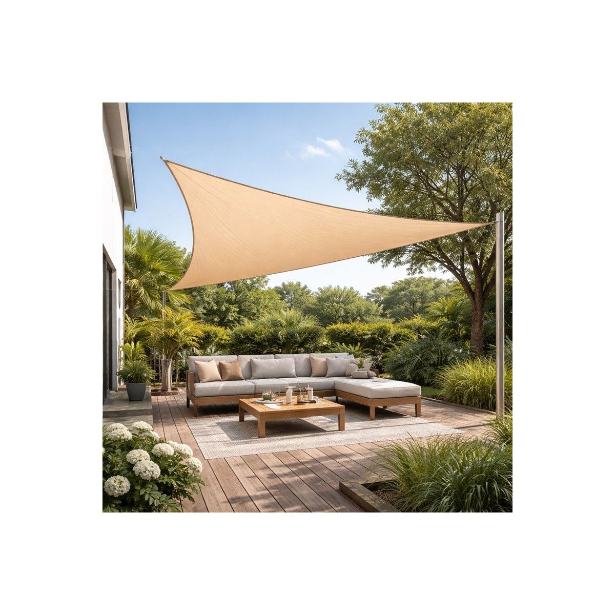 La voile triangulaire peut être installée dans de nombreux espaces extérieurs : terrasse, jardin, patio, balcon ou près d’une piscine.